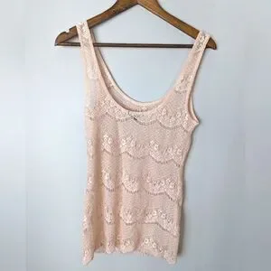 Talula Aritzia Lace sheer Rose Gold Tank Top Womens Size M Cottagecore Boho