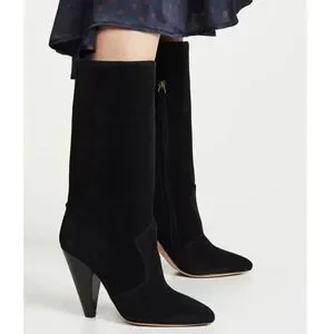 Veronica Beard Olivia Boots Black Suede Nuback Mid Calf Heeled Boots Size 6