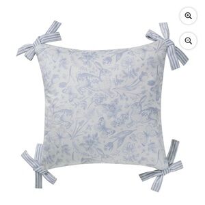 Blue Bunny Toile Printed Dutch Velvet Easter Pillow, 20"