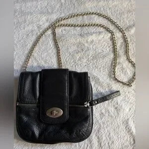 Banana Republic Black Leather Chain Crossbody purse Bag Twist Closure