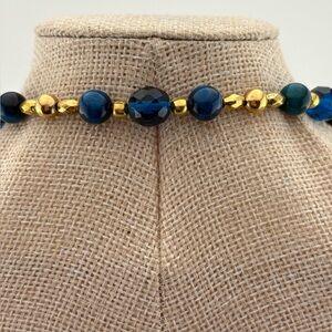 Beautiful Capri blue tiger’s eye beads paired with sparkling Capri blue Czech glass create a rich ocean-blue glow . The faceted glass catches the light beautifully while the tiger’s eye adds depth and shimmer.