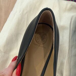 Stylish black flats featuring signature logo. Perfect for everyday wear.