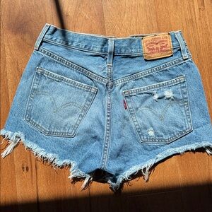 LEVI’S 501 Distressed Blue Denim Jean Shorts
