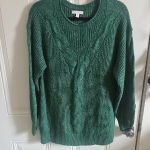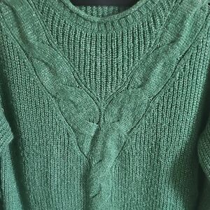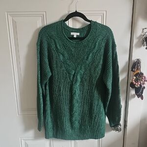 LC Lauren Conrad Forest Green Cable Knit Crew Sweater