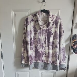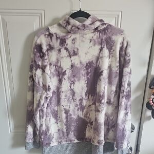 Como Vintage Purple and White Tie-Dye Cowl Neck Sweater