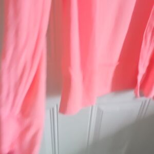 Open-front cardigan in bright coral pink. Lightweight knit for easy layering. Ribbed hem and cuffs. Casual, versatile silhouette.