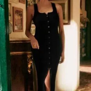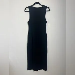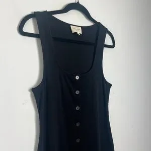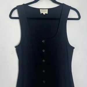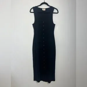 Sezane Size XL Black Fabiola Sleeveless Cotton Ribbed Button Front Midi Dress