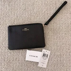 Coach Black Corner Zip Wristlet Crossgrain Leather NWT