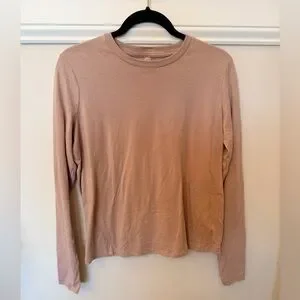 Soft long sleeve crewneck top in a muted dusty rose. Lightweight, breathable fabric for everyday wear. Clean, minimalist design that pairs easily with jeans or skirts. Comfortable stretch for a relaxed fit.