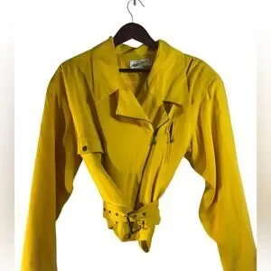 RARE Vintage 80s Yellow Silk Moto Jacket – Made in Hong Kong