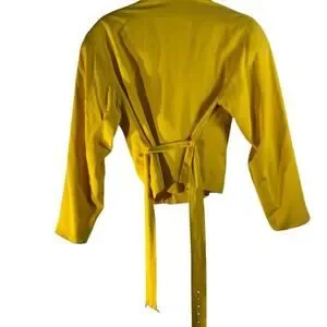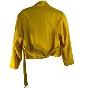 Vintage 80s Yellow Silk Moto Jacket Bold Shoulders Structured Hong Kong Made