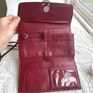 Y2k Brighton Red Leather Heart Wallet Crossbody Organizer Bag Coquette