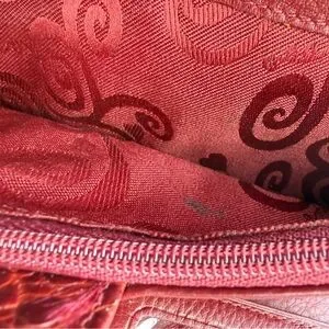 Cute Y2K red leather wallet crossbody with a silver heart clasp and croc embossed flap ❤️