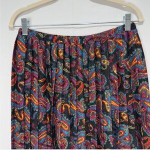 Vintage 80s Paisley Pleated Midi Skirt, Size 6, Multicolor, Deadstock