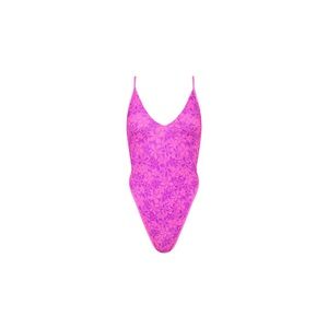 Sleek one-piece with allover floral pattern. Deep scoop neckline and thin shoulder straps. High-cut leg for a flattering silhouette. Bold hot pink color for a standout look.