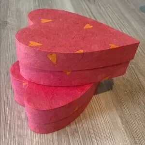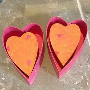 Set of FOUR TOTAL pink heart-shaped boxes with decorative hearts 🩷🧡