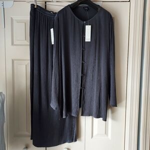 NWT Eileen Fisher 100% Silk Ripple Tunic And Skirt In Charcoal