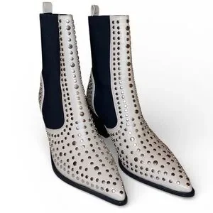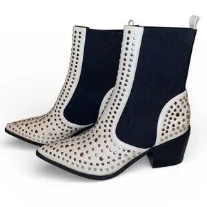 SHU SHOP Zsa Zsa Pointed Toe Western Inspired Ankle Boots Cream/Black Size 8-1/2