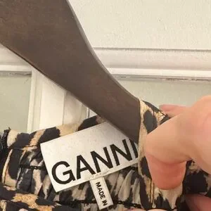 Ganni size 38 Leopard Print Peplum Top - Beige & Black
