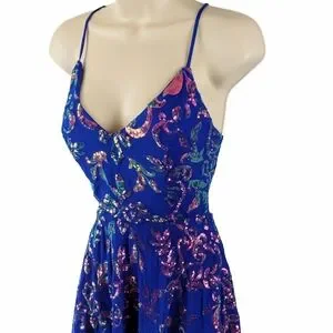 Windsor Blue and Pink Sequin Backless Dress