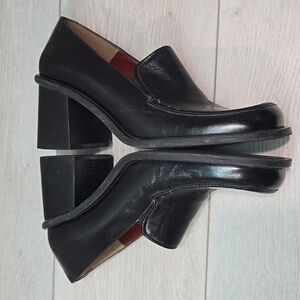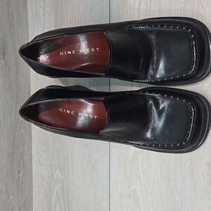 Vintage Nine West Kinetic Leather Y2k Women's Loafers Square Toe Heel Shoes 7.5M