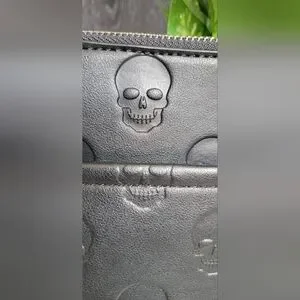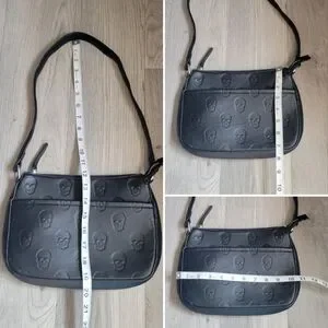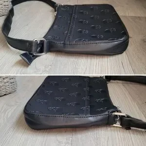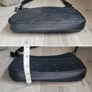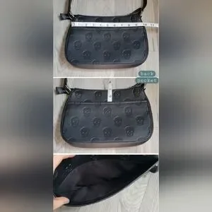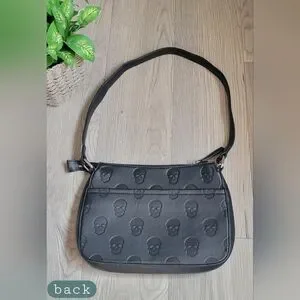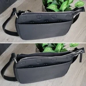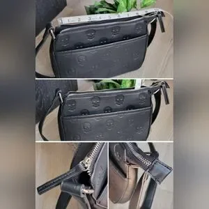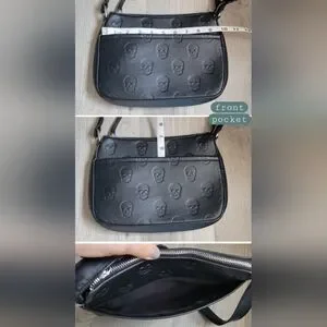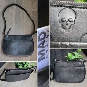 Mad Engine Monogram Skull Embossed Black Shoulder Zippered Bag, 19"