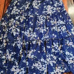 Allegra K Floral Elastic Waist Ruffle Maxi Tiered Skirt NWT