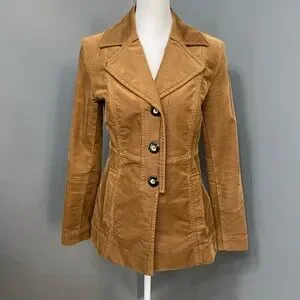 CABI Journey Tailored 3 Button Corduroy Jacket Caramel Brown Lagenlook Cabin XS