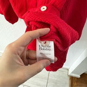 Charlie Holiday Red Cotton Gauze Harlow Button Down 3/4 Casual Oversized Shirt 6