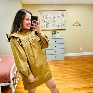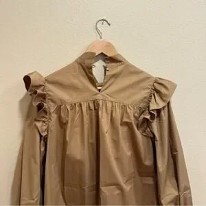 I adore this stunning designer Tuckernuck Xirena camel brown cotton long sleeve mini dress