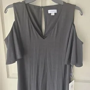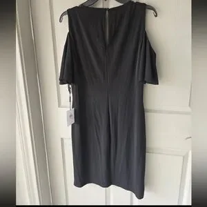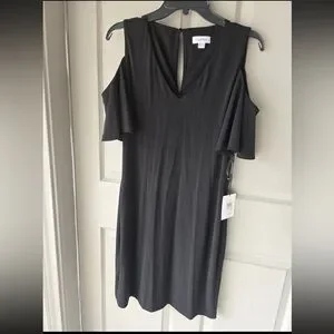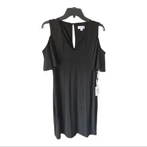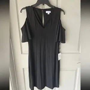$99 Calvin Klein Black Dress 10 Women Shift Cold Shoulder Flutter Sleeve New