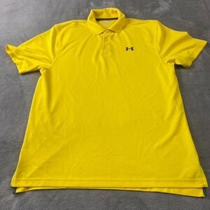 Under Armour Shirt Men's L Yellow Heat Gear Short Sleeve Golf Polo Sports Loose