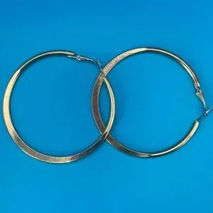 Earrings: Large flat hoop earrings with hinged post closure. Approximately 2.5" diameter. Surface shows scratching and wear - see photos.
