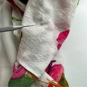 Preowned condition-small discoloration at bottom hem of skirt (shown in photo). No other known flaws.