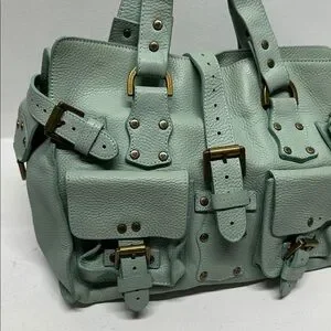 Mulberry Roxanne Satchel Bag Purse Studded Leather Limited Edition “Seafoam” Green Gold