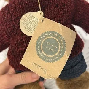 This retired Boyds Bear collectible blends charm and nostalgia. Featuring Leo Bruinski in a cozy knit sweater and denim outfit, it adds heartwarming personality to decor or collections.
