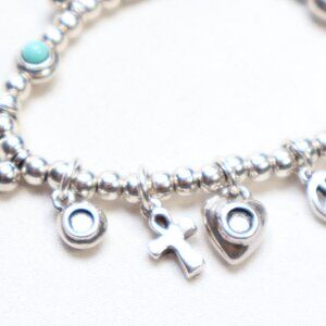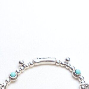 Uno de 50 Silver Tone Worship Turquoise Stretch Bracelet $80 MISSING 2 STONES! The item is missing 2 of the turquoise stones as shown. It is a stretch bracelet. It retails for $80.