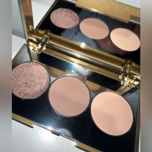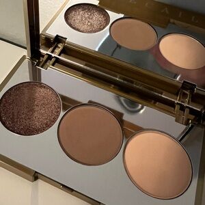 Three versatile shades for everyday elegance. Smooth application with blendable texture. Bronze shimmer pairs with two matte neutral tones. Compact luxe casing with mirror for on-the-go touchups.