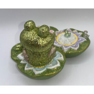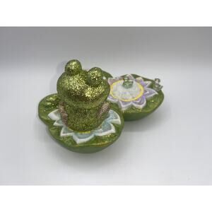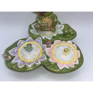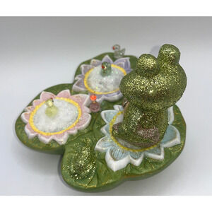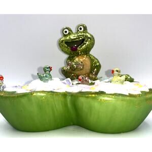 Vintage Ceramic Green Frog on Lilly Pad Ducks Deb O. Original OOAK Spring Decor
