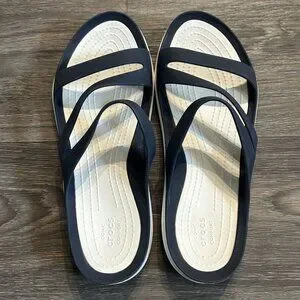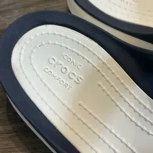 Crocs Swiftwater Casual Strappy Sandals Size 9 White Navy Slides Beach Pool