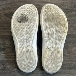 Signs of wear on soles, including slight discoloration and dirt marks.