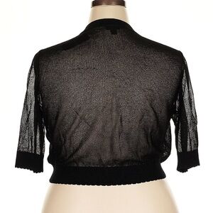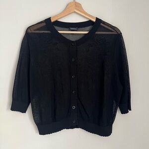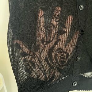 Sheer floral design with button front. Cropped length. Comes from a cat friendly and smoke free home. Offers and bundles always considered and appreciated. Material tag is cut out.