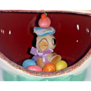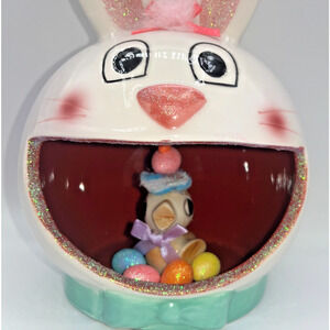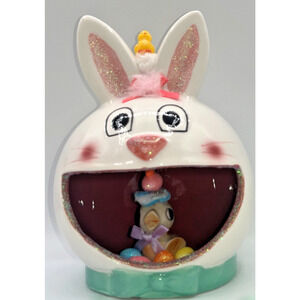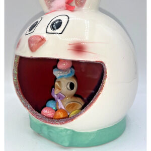 Vintage Ceramic Chick inside Ceramic Bunny Diorama Deb O. Original Designs OOAK