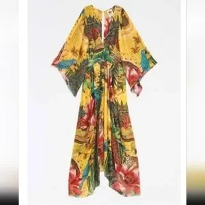 NWT Farm Rio Tropical Dreams Caftan Maxi Dress In Cheetah & Floral Print