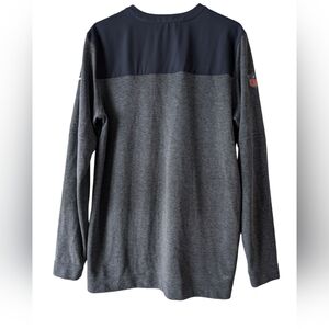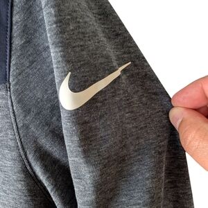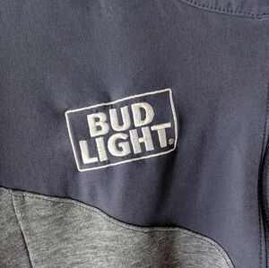 Navy and grey NFL/Nike quarter zip long sleeve shirt featuring NFL and Nike logos on the sleeves. Dri-FIT material for comfort. Denver Broncos and Budlight logos on the chest. Like new condition.