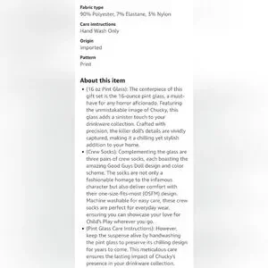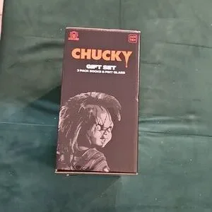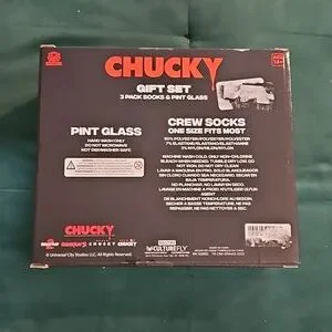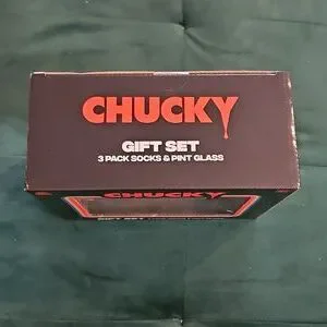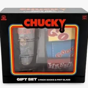 Culture Fly Child's Play Chucky 4 Piece Gift Set 3 Sock Pairs Pint Glass Sz 14+