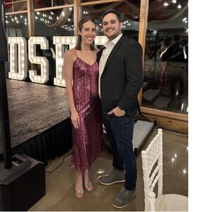Step into the spotlight with this Maeve dress, featuring a dazzling pink sequin finish and a pleated midi skirt. Perfect for a night out or cocktail event, its spaghetti straps and sundress style offer a chic and elegant look.