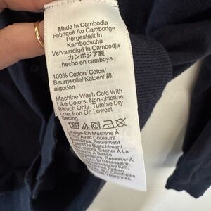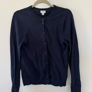 J. Crew long-sleeve crewneck cardigan. Button-front closure with a slim, classic fit. Soft knit 100% cotton, ideal for layering. Deep navy shade for a polished look.