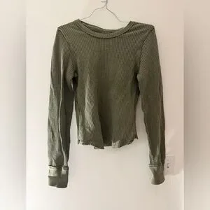 Free People We the Free Roll With It Thermal Long Sleeve Top in Moss Size Large