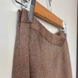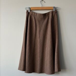 A timeless A-line skirt in a fawn brown color. Soft, lightweight 100% wool shell. Flattering silhouette that hits just below the knee and drapes beautifully for everyday or office styling. Easy to pair with sweaters and boots for a polished look. Excellent condition.